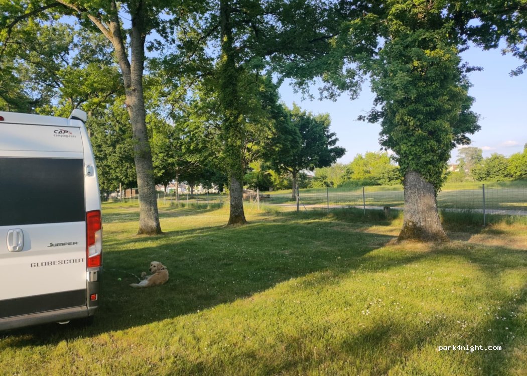 Bel endroit pour se poser avec quelques grands arbres et des places sans contraintes. Le prix est très honnête 18€ services compris pour 2 et un chien.
