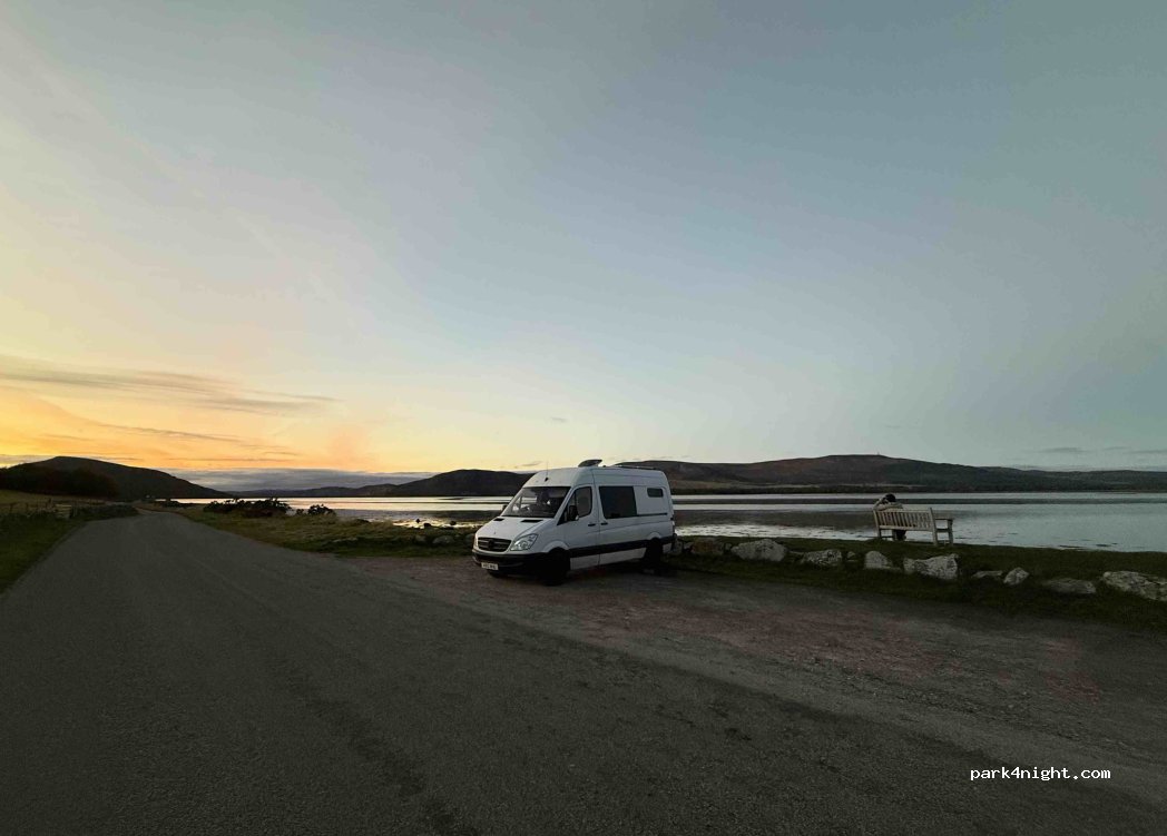 Easy to find, just off A9. Quiet, right on the edge of Loch Fleet and a gorgeous place for spotting seals! No facilities but no prob as we have our own. Make sure you don't park in one of the many passing places (but they are all marked).