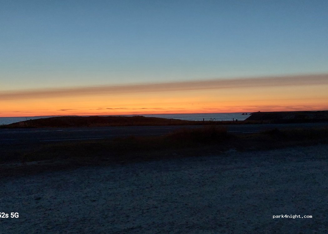 Perfekter Parkplatz für einen Stopp oder auch eine Nacht. Wunderschöne Aussicht auf den Ozean. Ich kann mich den anderen Bewertungen anschließen, denn die Straße ist zwar tagsüber befahren, aber abends ab 21 Uhr fährt kaum noch ein Auto vorbei. Höhenbeschränkung auf 2,10m, aber kein Verbotsschild! Wir hatten im März eine sehr ruhige und kaum windige Nacht alleine im Camper!