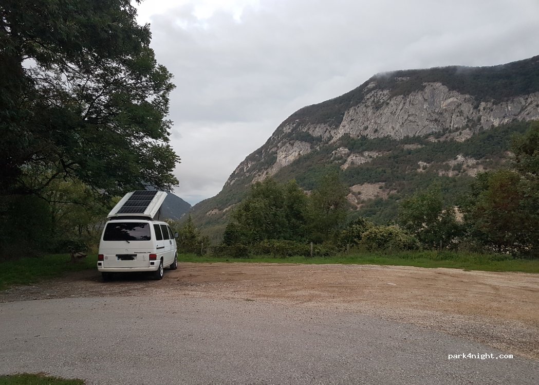 Ein ruhiger kleiner Parkplatz am Dorfrand mit toller Aussicht. Super Ausgangspunkt zum Wandern und Klettern. Nachts sehr ruhig. Sehr zu empfehlen.