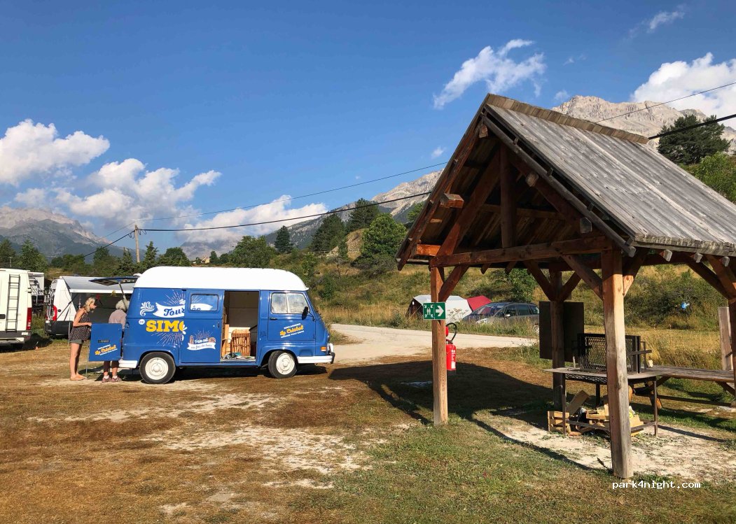 Tolle Plätze in Natur (Aires Naturelle des Camping Nevache). Man kann zwischen diversen Plätze auf Wiese auswählen. Teils fast direkt am Fluss. Viel schöner als 'richtiger' Camping. Man sieht zwar Strasse aber die stört nicht wirklich. Wenn man richtige WCs, Duschen etc braucht steht man besser auf Camping 1km talaufwärts.