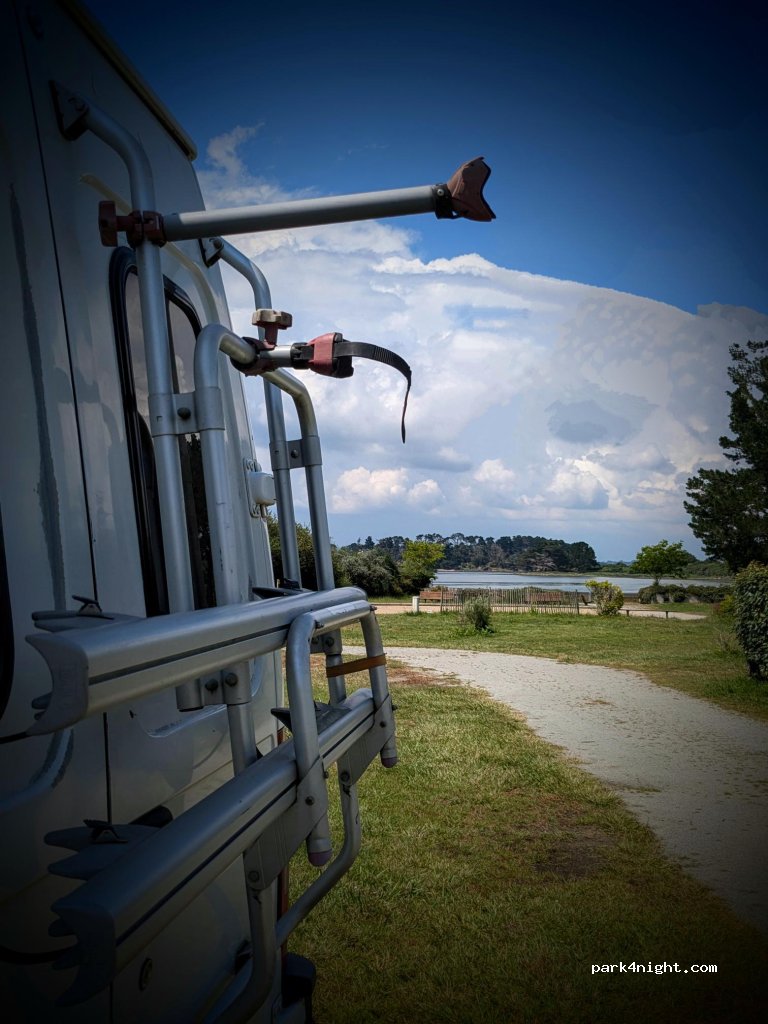 Les emplacements pour les camping-cars de passage sont super, idéalement placés près de la mer, avec vue sur les îles… calme, sérénité, propreté à un tarif défiant toute concurrence (9,60€ la nuit). Navette gratuite pour rejoindre le port, location de vélos… food truck à l entrée avec crêpes et galettes… superbe camping municipal dans un coin où il n est pas facile de se poser pour la nuit.