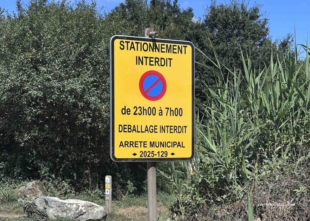 Parking interdit au camping, comme sur le reste de la commune, stationnement interdit la nuit. La police municipale est passée nous déloger et verbaliser