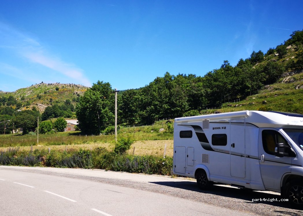 Étape isolée sur les hauteurs pour petit gabarit (accès peu large) sur le parking de la cascade. merci de préserver l'état sauvage du lieu.