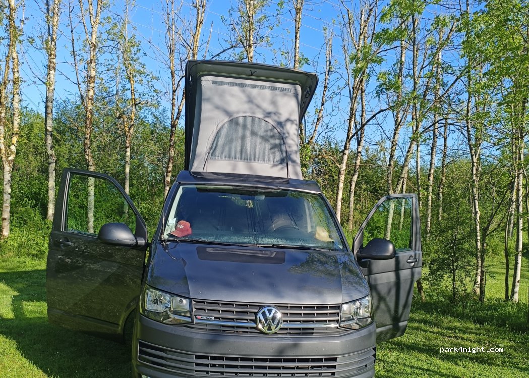 très beau parc très agréable sauf à partir de minuit quand les jeunes viennent faire une soirée techno à côté du camping car alors que le parking est vide.