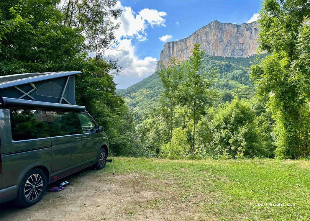 Privater Campingplatz Gouffre de la Croix *** direkt am Ufer der Bourne Stellplätze total im Schatten, perfekt bei heißem Wetter) Schlucht und Grotte in der Nähe, nicht weit entfernt von Pont en Royans und der Vercors-Hochebene. Es ist besser, dort ein paar Tage zu verbringen. Camping ist sehr sauber und ultraleise, Sanitärblock wie neu.