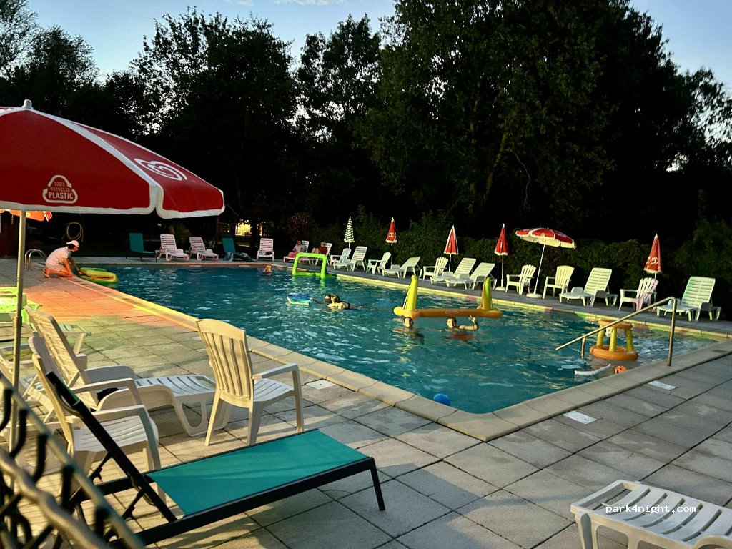 One of the best camp sites we have been to! Great for kids - beautiful swimming pool, trampoline, playground and two bouncy castles. Incredibly clean everywhere. Bread service available. Lovely owner.