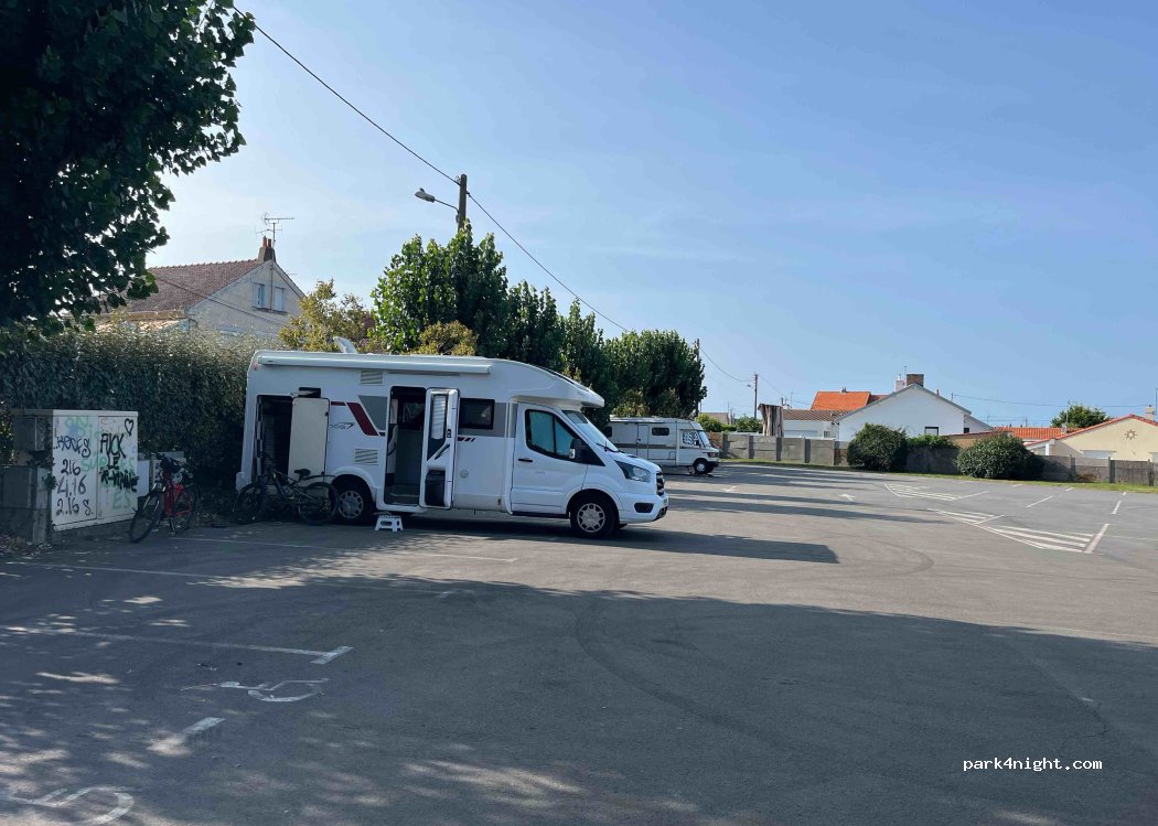 Parking gratuit pour une nuit c'est nikel attention toutefois renseigner vous a l'arrivée pour les jours de marché. nous sommes arriver le 15 août parking vide poubelle sur site et toilette public plage à 300 mètres pour pas gêner pas de déballage extérieur