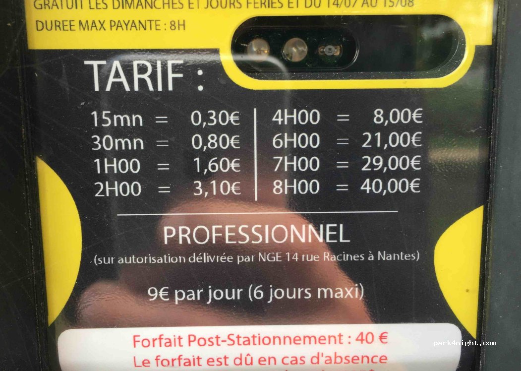 Je me suis garé sur le côté du quai, car plus de place sur le ptit parking... j'ai passé une nuit semi calme car de la musique de jeunes jusqu'à 2h du mat ! Je met tout de même 4 étoiles pour la vue et proximité du centre de Nantes