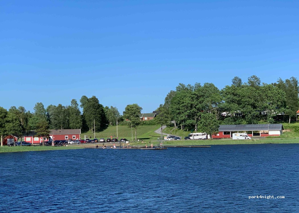 Schöner und ruhiger Platz direkt am See. Die Bezahlung erfolgt über die Swish App oder am ICA am Bahnhof. Toiletten sind in den Räumen des Sportplatzes gegenüber. Eine Dusche und Küche ist vorhanden. Strom hat es nicht für alle Stellplätze