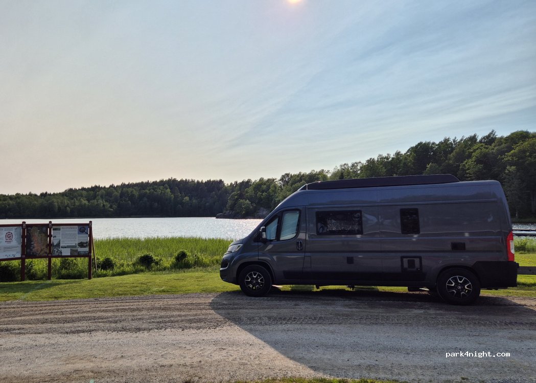 Parcheggio di un club di calcio. paghi 150 sek a camper e puoi usare le docce calde e il wc dello spogliatoio, puoi scaricare il wc e ricaricare l'acqua e usare l'elettricitá. per me esperienza unica, vicino a un laghetto e ai campi di calcio, posto meraviglioso!!