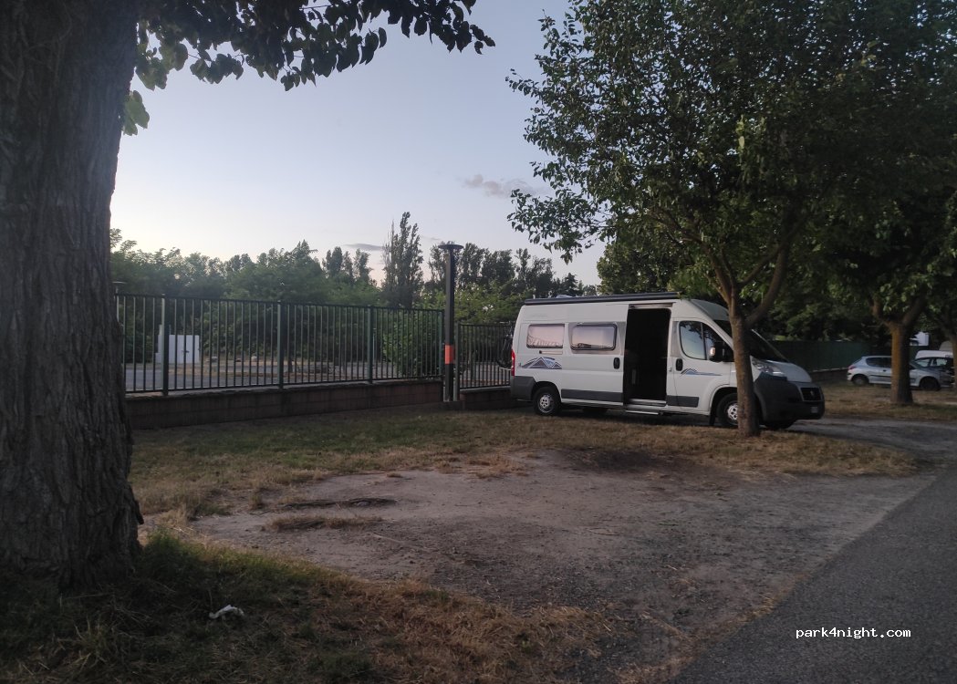 Siamo arrivati qui nella notte, c’era un altro camper, nonostante fosse in settimana fuori stagione. Zona tranquillissima, dormito bene. La metropolitana è proprio a qualche minuto a piedi, comodissima.