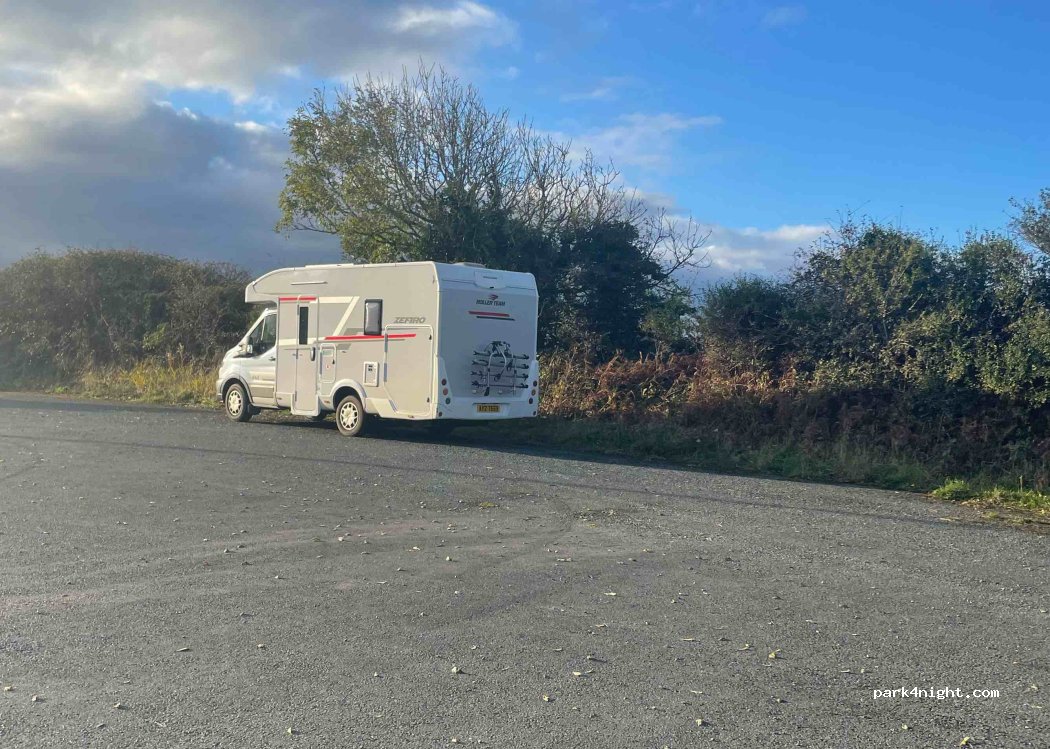 Great place to park at night fairly big car park slightly sloped mainly used by dog walkers. It has a refuge bin also a dog bin very close to the beach nice sandy little Cove.