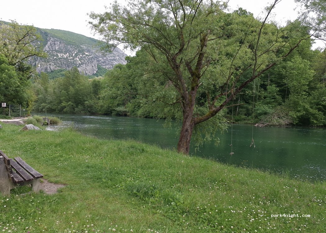 Au bord de la rivière et à 5-10 minutes du beau village du Pont en Royans , mais le prix est cher si on veut y passer que quelques heures (10€/24h ) mais est raisonnable si on y passe la nuit