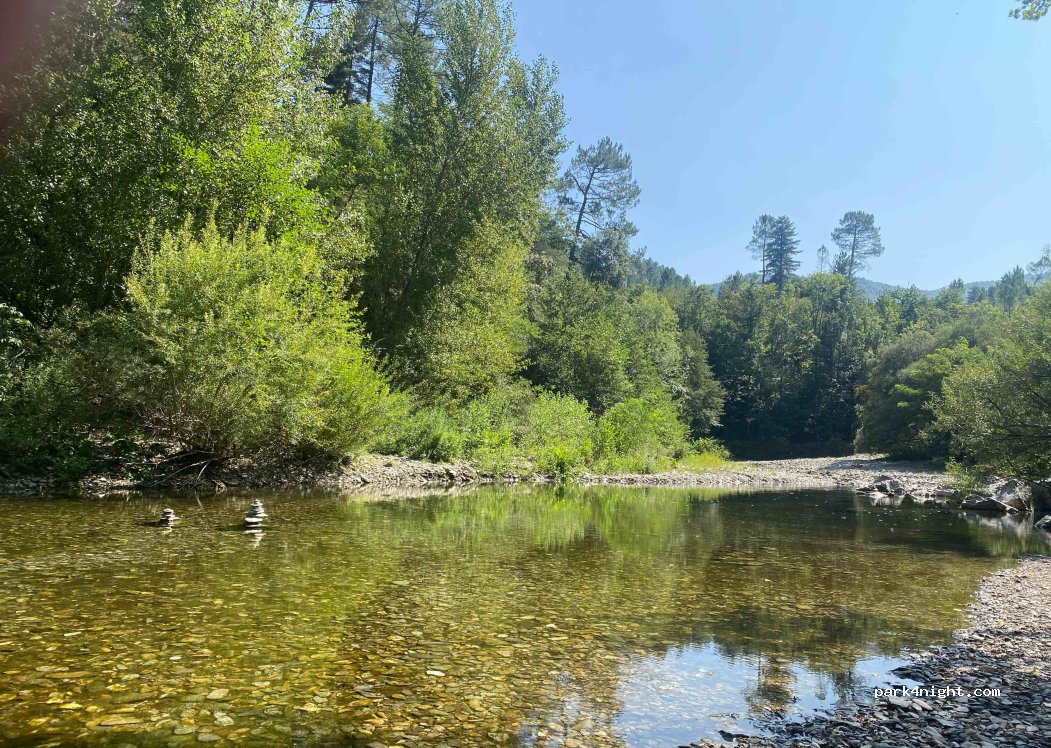 Sehr gemütlicher CP am Ufer des Gardon. Da wir Sanitäranlagen nicht benötigen, bewerten wir diese auch nicht. Sind aber eher einfach mit Stehtoiletten. Wir hatten einen schönen Abend mit tollem Sternenhimmel. Auch konnten wir im Fluß baden und uns herrlich erfrischen. Nachts der Ruf eines Käutzchens! Nette Eigentümer?.