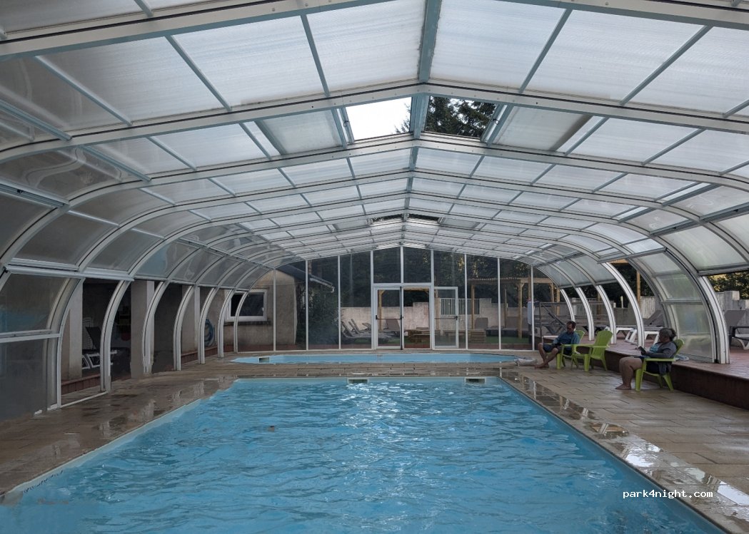 Camping ouvert début mai mais de façon réduite, seulement 3 toilettes et douches pour tout le monde, avec eau chaude aléatoire. Épicerie pas ouverte au mois de mai. Piscine couverte mais propreté à revoir, emplacements de tente minuscules, relégués la ou les bungalow ne peuvent pas être casés, avec vu sur les bungalow - tarif cher, 72€ pour 2nuits en tente à 4, très cher au vu des prestations