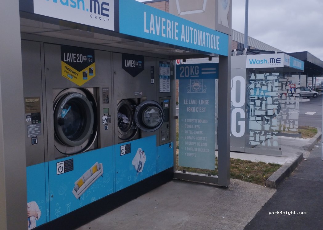 Borne de service et Laverie fonctionnelle possibilité de stationnement sur le parking mais limitée a 3,10m