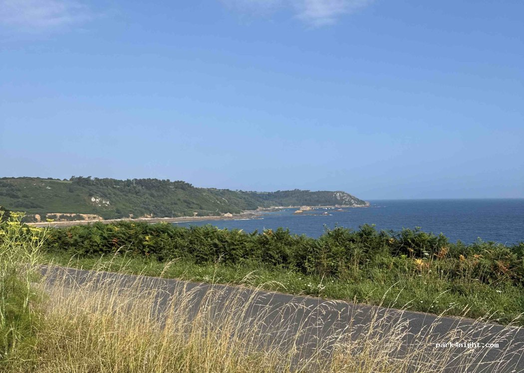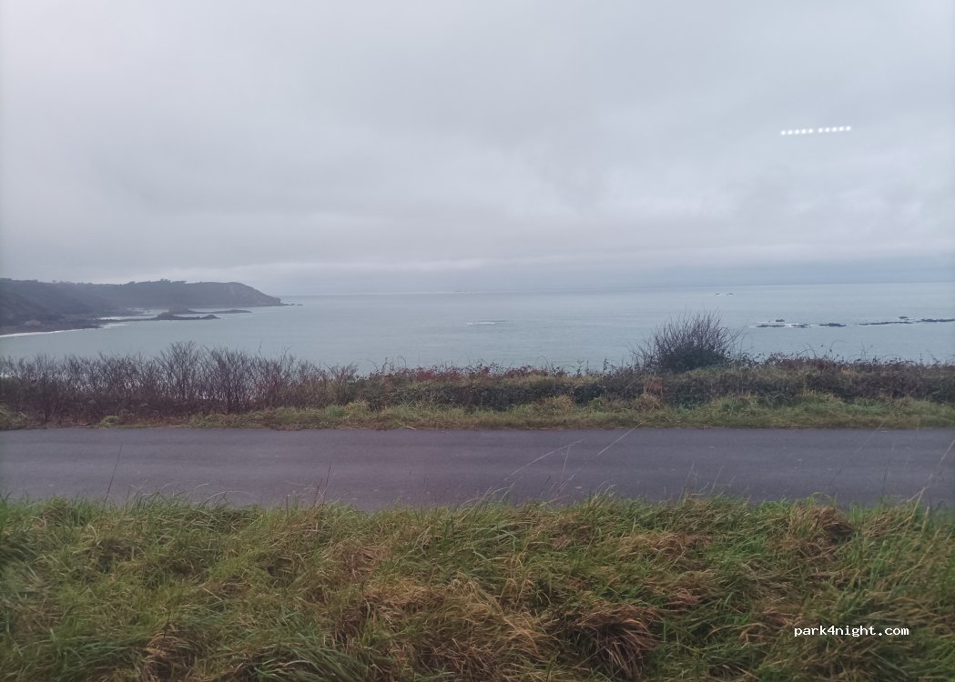 Bien le bonjour à vous tous. Pas vu aucun panneau interdisant la possibilité de passer la nuit. Aussi nous allons-nous y essayer pour la nuit. Panorama incroyable comme presque sur tout le littoral.