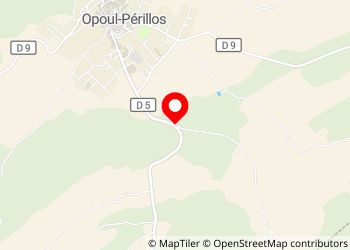 Just before reaching Opoul on the right ... Small road not frequented with the shelter of the pines place known mill old ... Nice calm place with sight on the castle And the village
