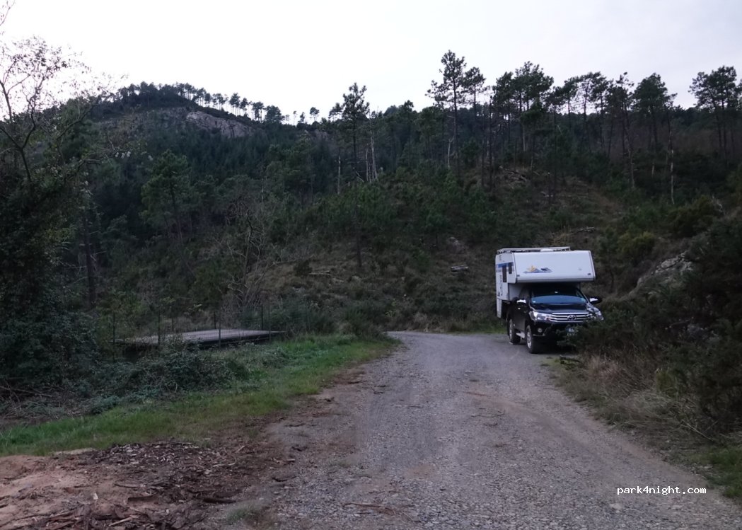 Ausgangspunkt für Wanderungen, umgeben von Bäumen, mit einem großen flachen Teil am Ende des Weges, um sich bequem niederzulassen und mit Wendemöglichkeit. Zufahrtsstraße ein wenig steinig auf ein paar Metern, eher geeignet für Campervans. Nachts sehr ruhig.