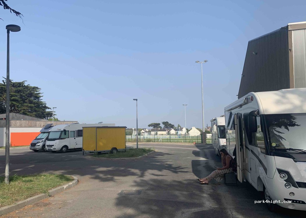 Super parking pour petit camping-car et vannes, très tranquille, à 500m d’une plage côté côte sauvage et 1km a 1,5km de plage plus grande et de restaurant super bon… Au pied d’un Château d’Eau, à côté d’un jolie parc et du stade.
