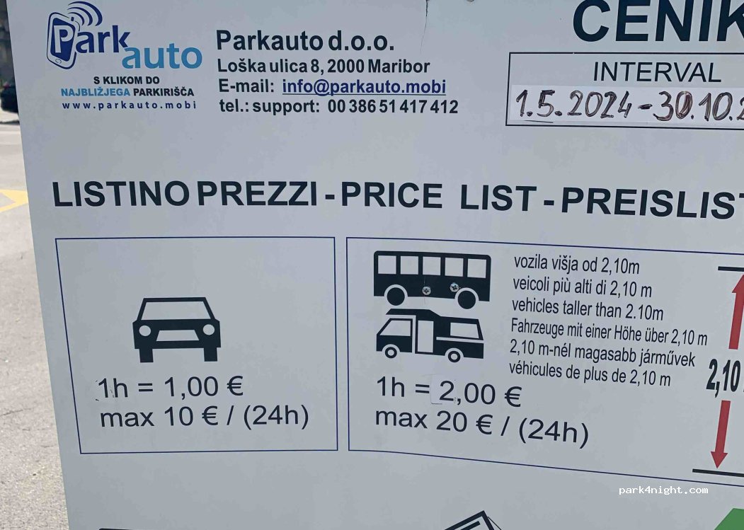 Der günstigste Parkplatz auf dem man schlafen kann in der Umgebung. Die Musik, die abends von der Kirmes gespielt wird, ist laut und nervig. Man möchte dort keine Zeit verbringen. Das Gute ist, dass der Parkplatz sehr nah an Izola dran ist und man direkt an der Promenade in die Stadt gehen kann. Um 22:30 schließt die Kirmes.