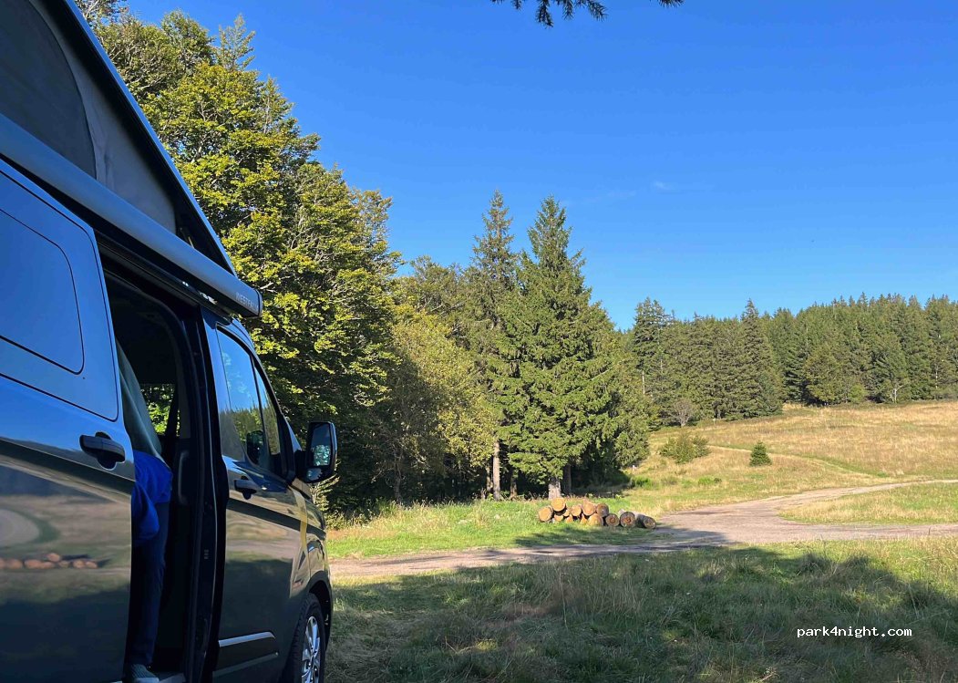 Idéal pour passer une nuit au calme et avec une vue magnifique vue avant de visiter le camp de Struthof. C’est situé en bordure de la route mais elle est peu passante, nous recommandons ce spot.