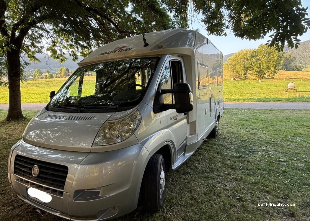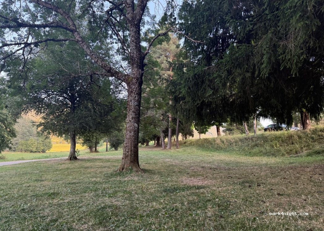 A 5 minuti a piedi dai negozi, alcuni camper restano la notte. Molta ombra, affollata nei fine settimana estivi.