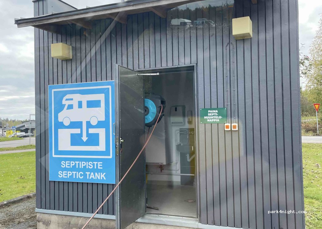 Very good place to empty septitank, toilet and add fresh water. Also possibility to add air to tires if needed. And there are all the ABC services in the area.
