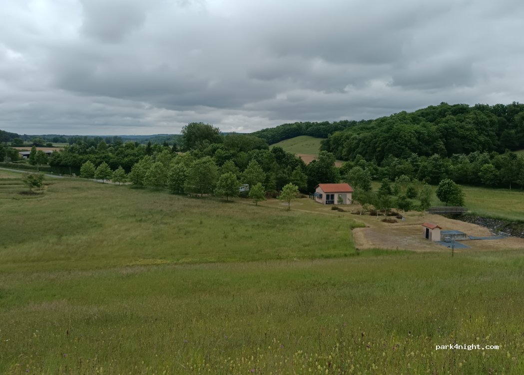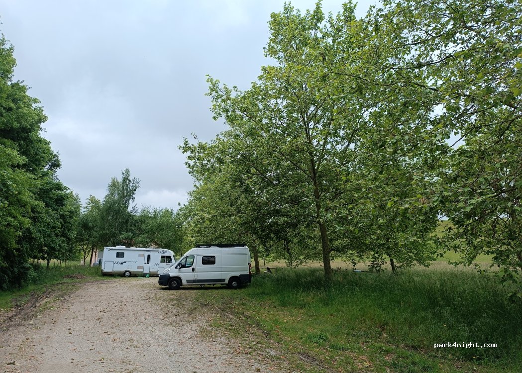 L'endroit est un peu à l'abandon l'herbe n'est pas tondue. Nous y avons passé une très mauvaise nuit, sur le parking à côté des jeunes teufeurs avec la musique techno toute la nuit. On va chercher autre chose pour la prochaine nuit.
