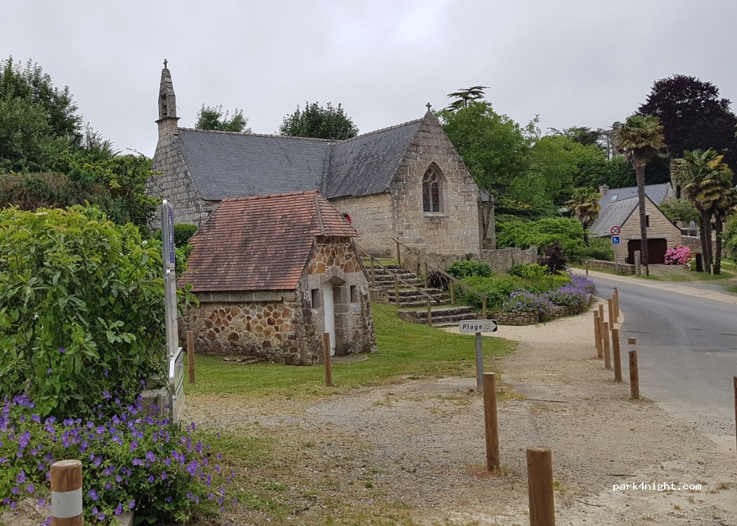 Si votre GPS vous demande de passer par des rues trop étroites, prendre la direction de la plage de Port Manech via la rue Kercouliou Stang, puis rue de la Plage. Le parking tout en longueur est juste après la Chapelle St Nicolas.