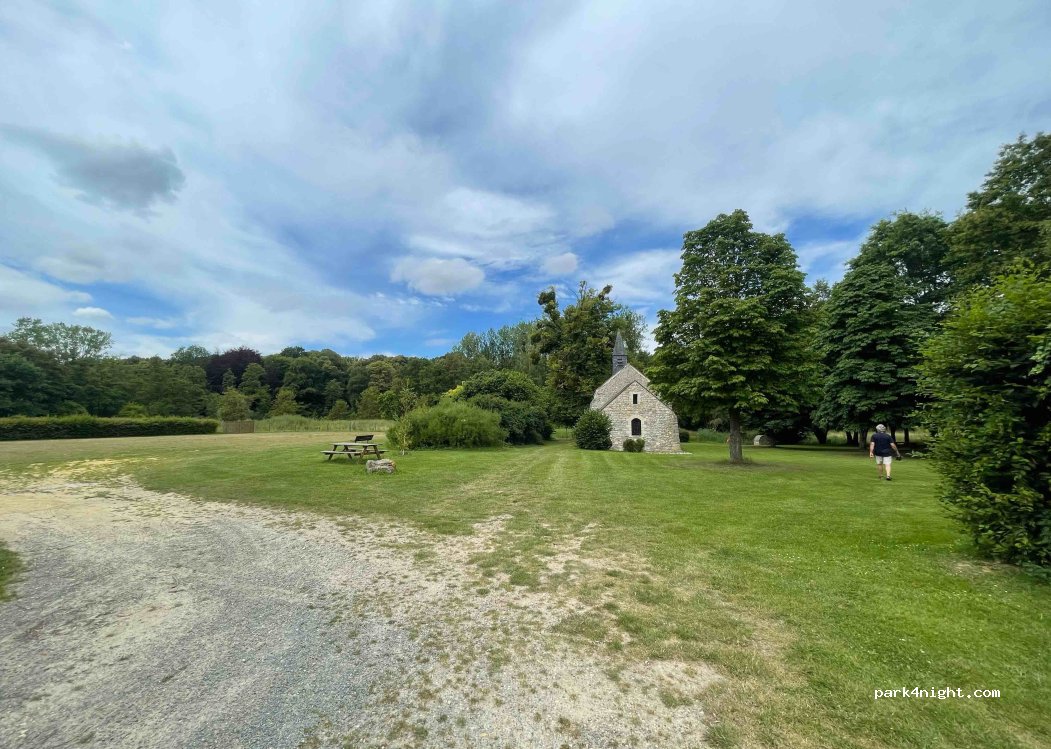 On ne peut plus accéder à La Chapelle en CC mais il n’y a de la place sous les arbres sans problème. Pause repas pour nous aucune interdiction pour dormir mais bruit de fond important du fait de la N2.