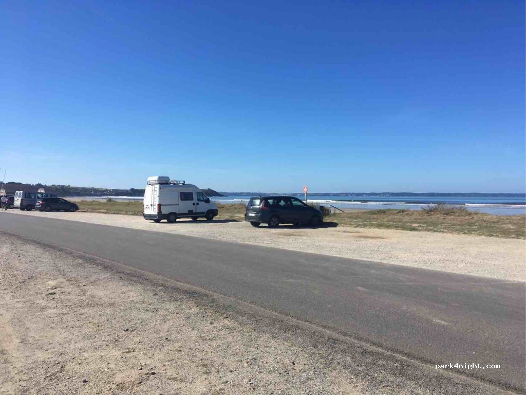 Parking by the road facing the sea. Prohibition of parking for motorhomes on parking near the city. No sign for this parking. A few cars at night. Much more traffic during the day. Ideal for quick access to the beach or sailing school. Public toilets and free beach showers at the beginning of the beach.