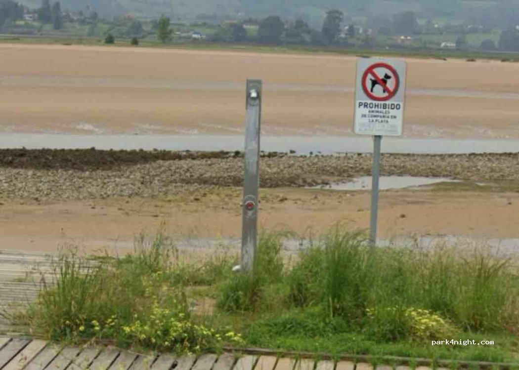C'est un simple parking, de l'autre côté de la plage de Rodiles, sans service, réservé aux fourgonnettes et aux voitures. La police passe apparemment régulièrement, mais les fourgonnettes sont autorisées à condition de ne pas trop s'étirer. Vue sur la ria et au loin les magnifiques sommets d'Europe, petite plage au bord de la rivière. Quelques restaurants à côté.