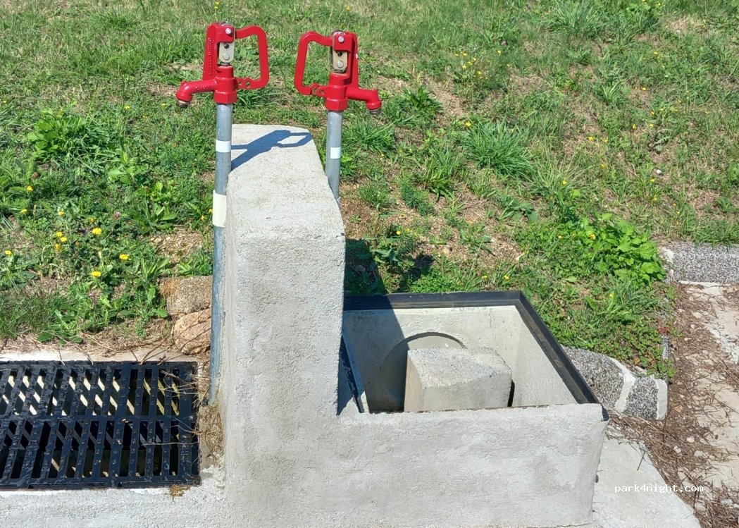 aire très bien aménagée, calme , belle vue, beau village à visiter , petit commerce avec pain , gérante très aimable. attention nous avons failli passer à côté de l eau, car système assez dure. pour avoir de l eau lever a fond la tige rouge. nous reviendrons