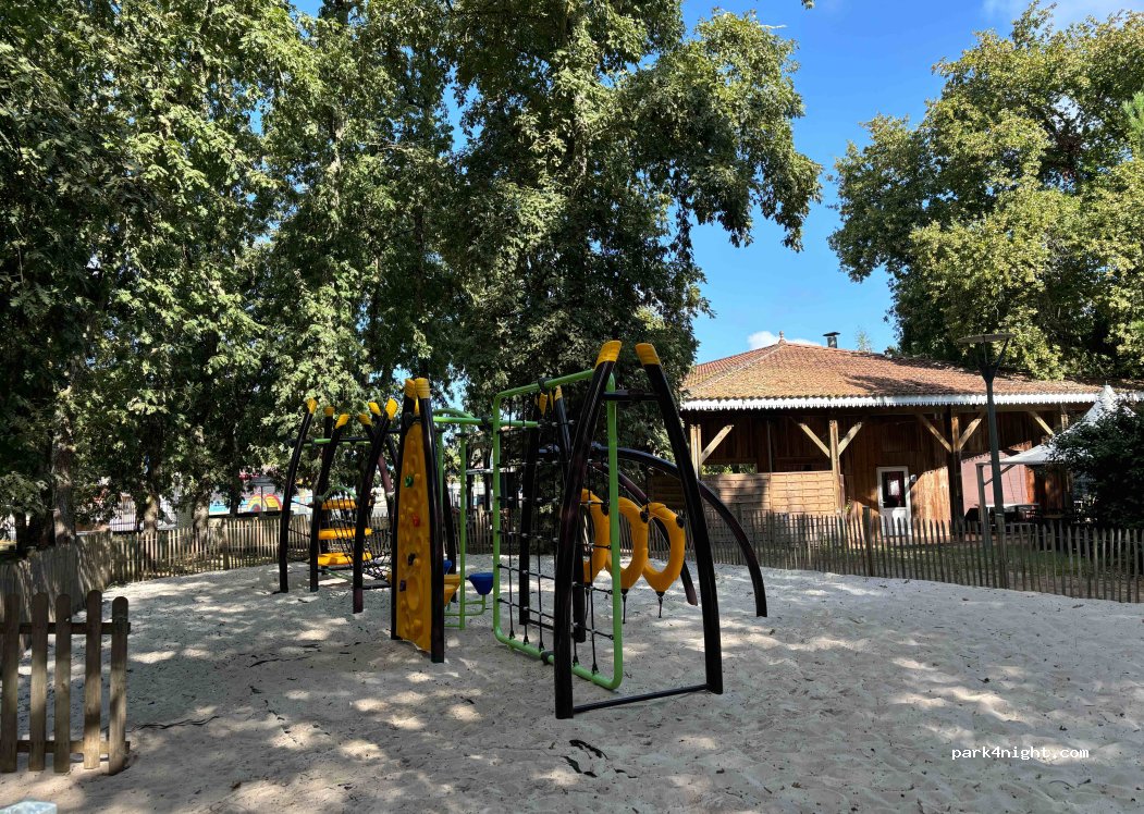 Great spot! Beautiful forest with easy access from Bordeaux. Supermarket across the street, helpful reception arriving after 18h (until 22h possible to arrive). Calm, spacious, nice playgrounds and (improvised?) a very comfortable cabin with bathroom with hot shower and clean toilet.