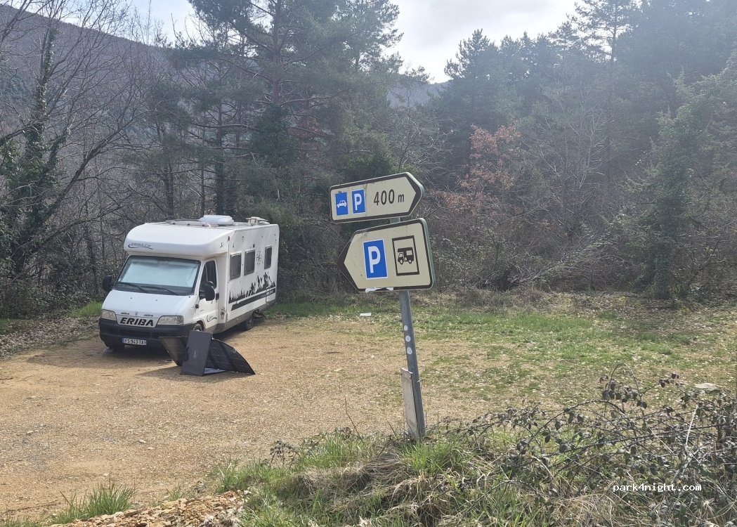 Parking camping-car pour les visiteurs du Château car la route est trop étroite après. Possibilité de garer maximum 4 véhicule. Il faut finir à pieds (10 min) pour accéder au site