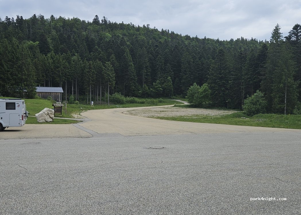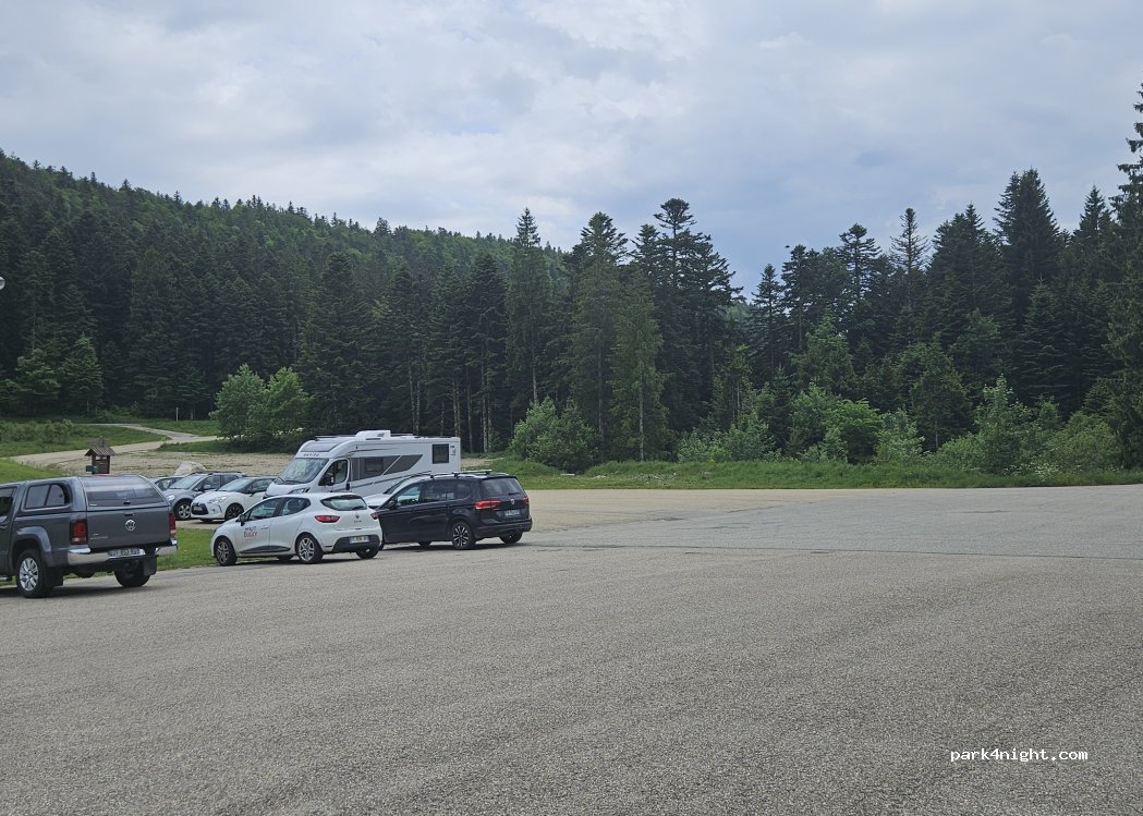 grand parking plat, mais beaucoup de monde le weekend : arriver tôt ou tard! au pied des pistes de ski de fond et des itinéraires raquettes. possibilité de louer le matériel. des jeux pour enfants. nuit calme jusque 8h30.