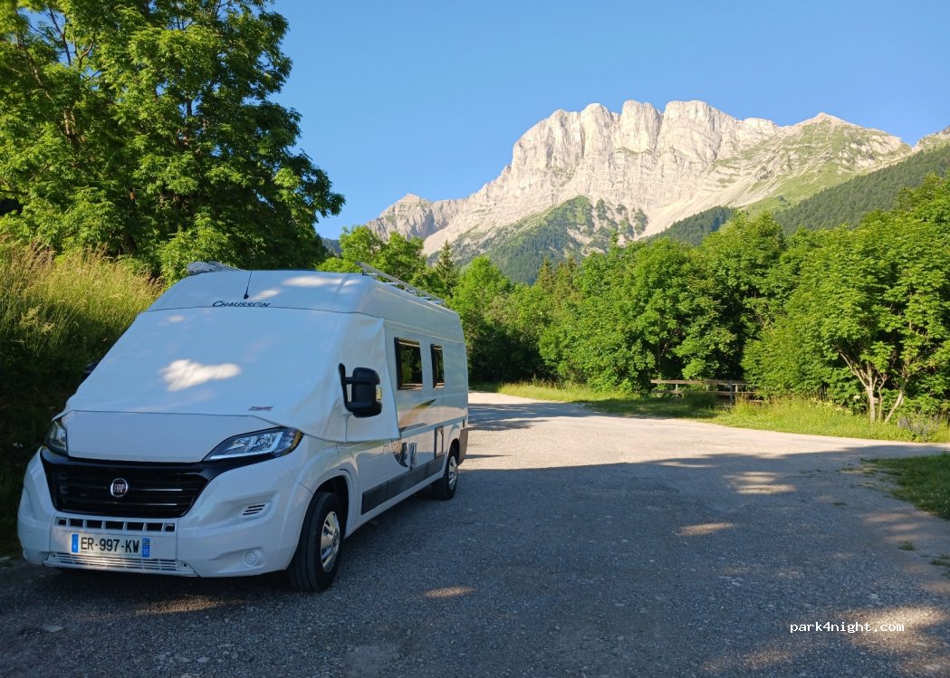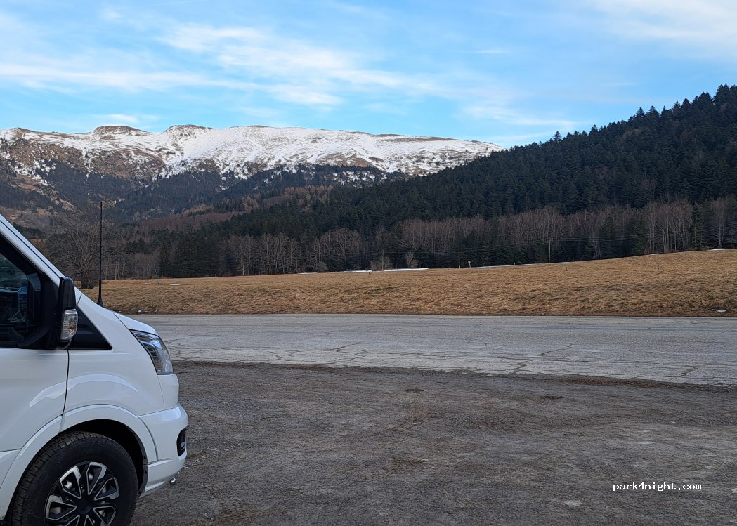 Small family ski resort. Area located at the bottom of the car park at the foot of the slopes, pay attention to the sign and location preferred by the town hall which welcomes us. Emptying at the campsite. Pitches for motorhomes without electricity. Close to trails for good walks in the Vercors (Le Grand Veymont, Mont Aiguille).