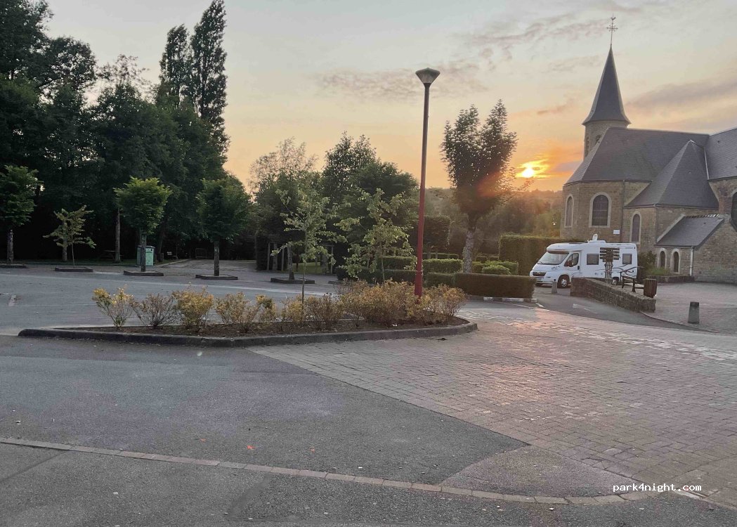 Parking à côté d’une église mais pas de gêne avec les cloches. Une boulangerie pâtisserie est sur le coin de la place. Nuit calme malgré une route un peu fréquentée la nuit. Merci a la Mairie. 2 a 3 places maximum.