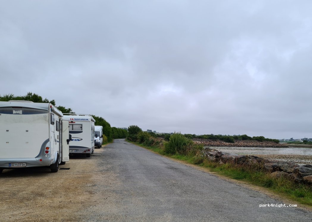 Super spot dans la baie de Morlaix face à la superbe île Callot. Coin nature plat tout au bord de l'océan. Nuit très calme, endroit propre, 2 poubelles sur place.