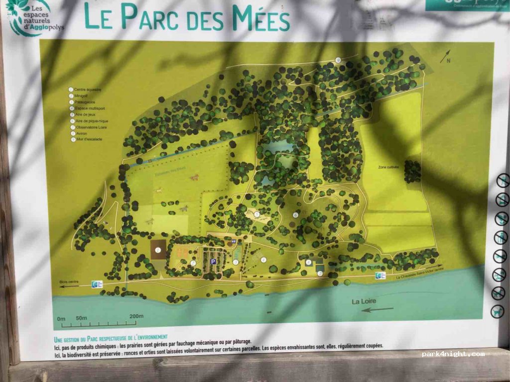 Parking à l’ombre à coter dans un grand parc et de la loire proche du centre ville gratuit et autorisÉ. J’ai appelé la mairie et la police municipale pour avoir une confirmation aucun n’arrêté, aucune restriction. Poubelles à disposition.