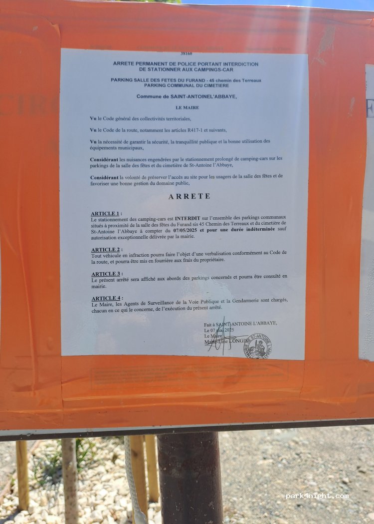 ce parking est interdit aux camping cars par arrêté municipal
