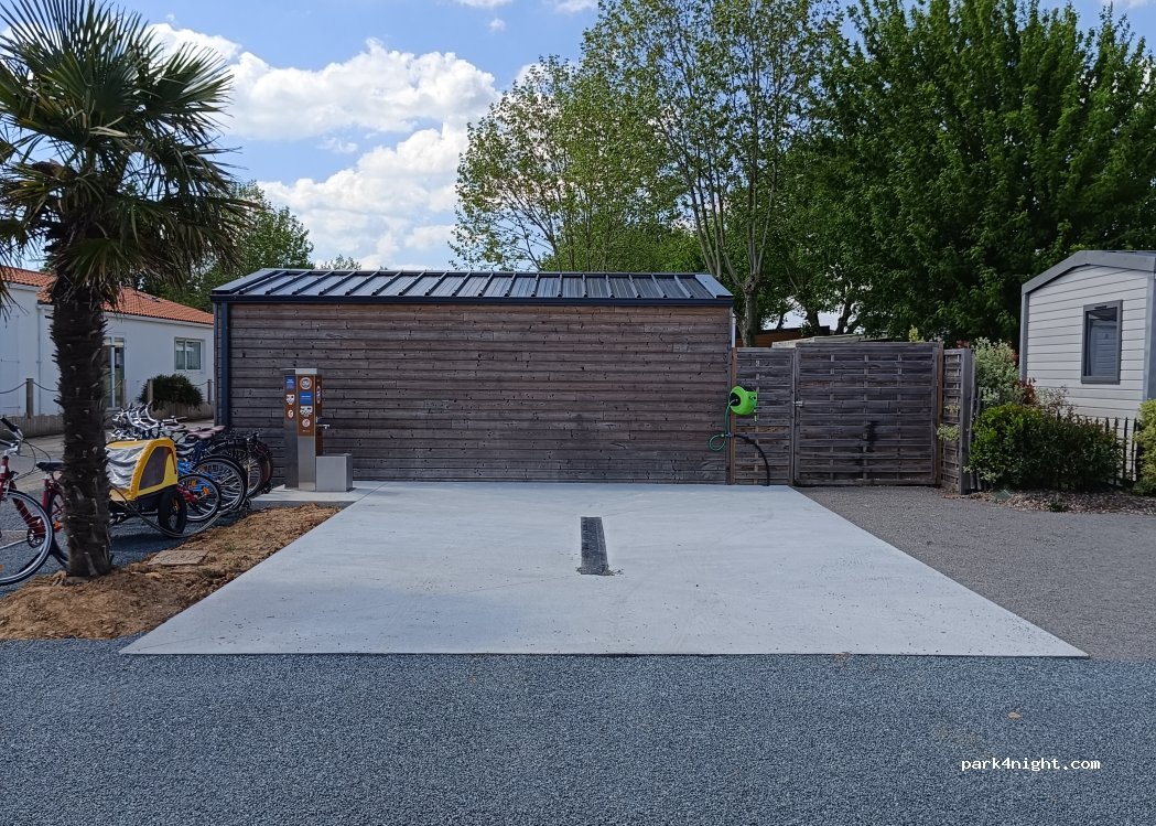 emplacement très bien délimité avec haies, piscine intérieur et extérieur agréable sanitaires moyennement propres Dommage que les services s'arrêtent au 15 septembre
