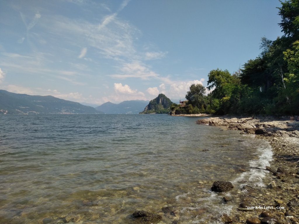 Parcheggio Spaggia Cinque Arcate (Punta Granelli) Solo giorno, venti posti per veicoli di piccole dimensioni. Accesso diretto alla spiaggia con una splendida vista sulla roccia di Castelveccana