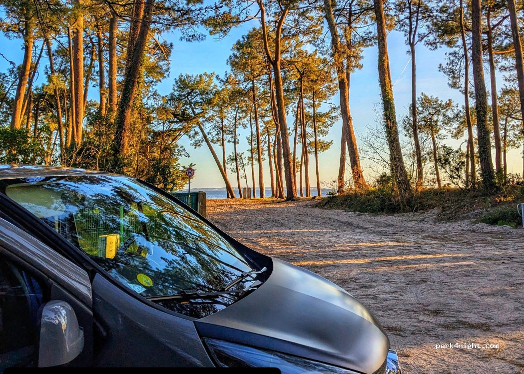 Je confirme les commentaires précédents. Il s’agit d’un parking très pratique pour une nuit ou deux. Profitez des tables de pique-nique avec vue magnifique sur le bassin d’arcachon . Poubelles sur place et douche de plage. Un peu de passage le soir et le matin par les locaux qui vont se promener au bord de la mer.