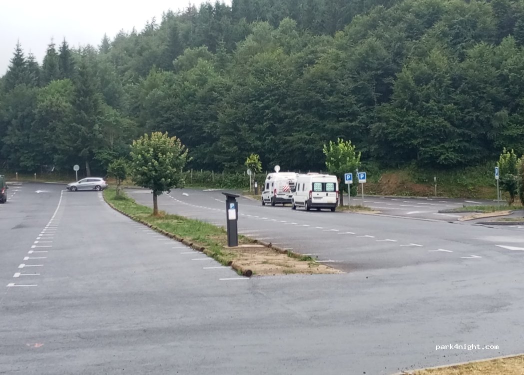 Grand parking légèrement pentu sans service (hors poubelles) à partager avec les automobiles. Les nuits ne sont pas interdites. Idéal pour profiter de l'air frais et randonner en partant à une altitude de 1271 mètres.