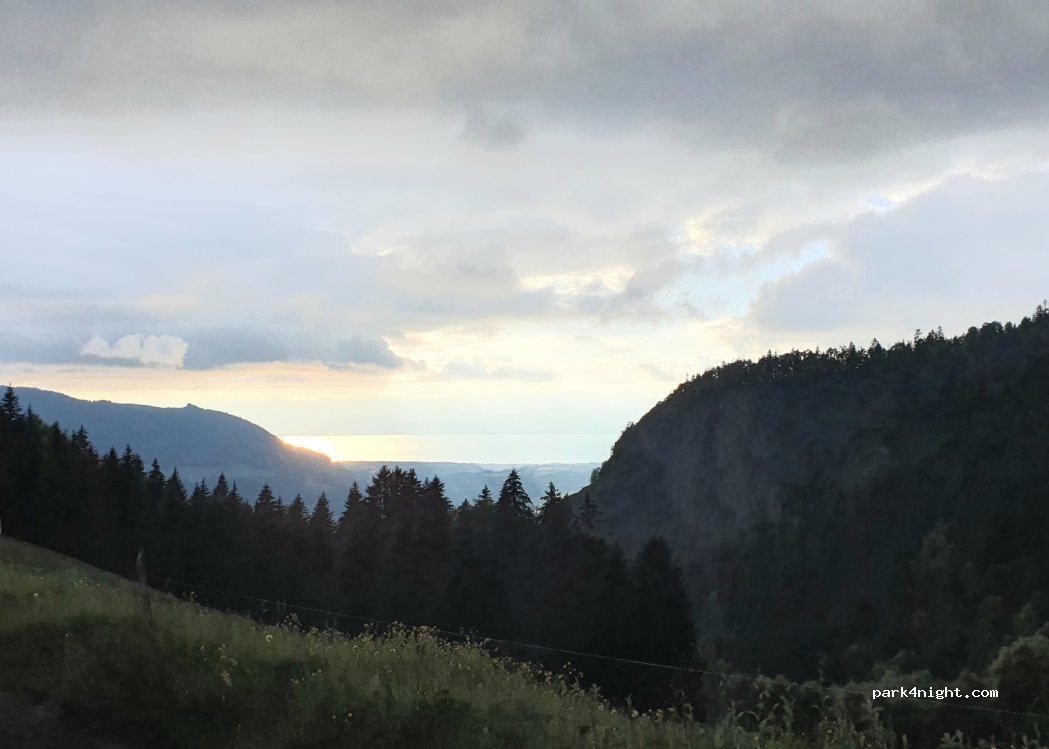 Le stationnement de nuit est interdit au col de Tréchauffé, mais on peut y faire une pause pour déjeuner ou dîner. Le coucher de soleil sur le lac est magnifique.