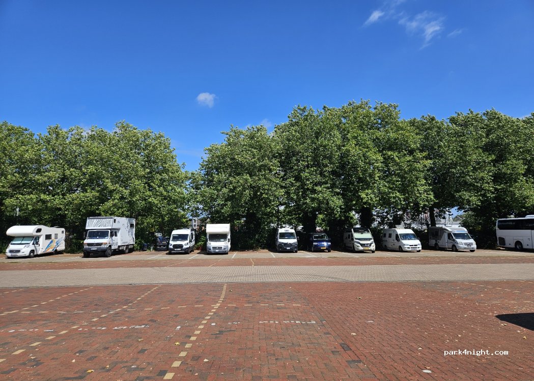 After returning from France, this is very underwhelming place. The UK needs to accommodate camper vans better! However, it is here and we are very grateful! We're British so we're used to it, but for foreign travellers,I think you'll be disappointed. No barrier, pay at machine,£15 12hrs. no services..Sainsburys next door. Good kebab house down the road. Thank you for this space!