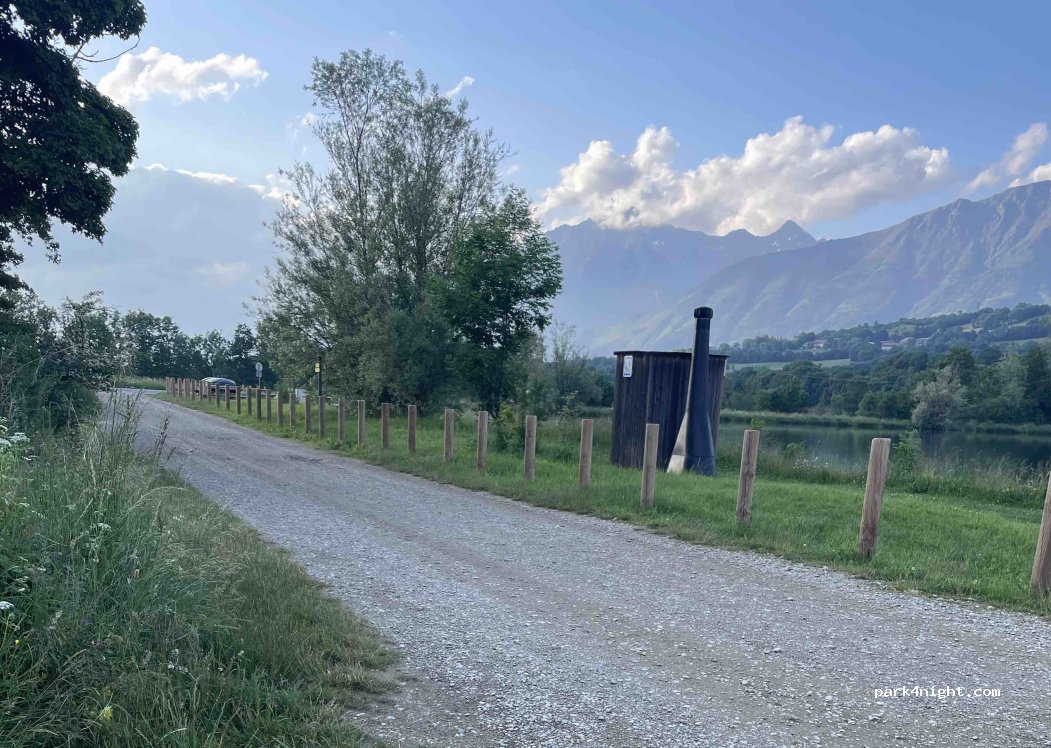 Lieu très calme, seul bruit les cloches des vaches selon le côté du lac. vues a 360 sur les montagnes. pêcheurs tôt le matin sans aucune nuisance. toilette sèche en très bon état, très propre, sans odeur et papier à disposition. poubelle, table et banc. un grand merci à la ville pour ce très bel endroit bien entretenu.